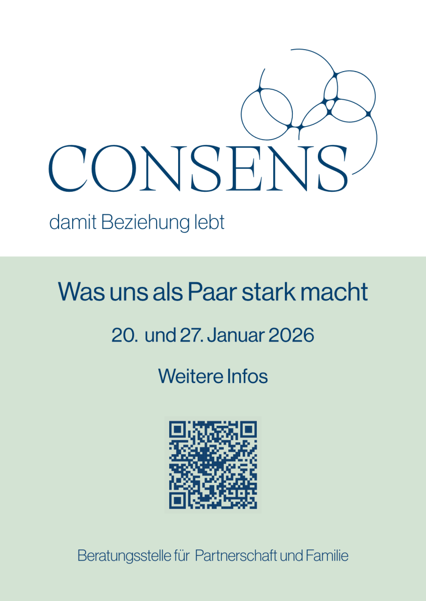 CONSENS, die Beratungsstelle für Partnerschaft und Familie führt am 20. und 27. Januar 2027 zwei Abende für Paare durch.