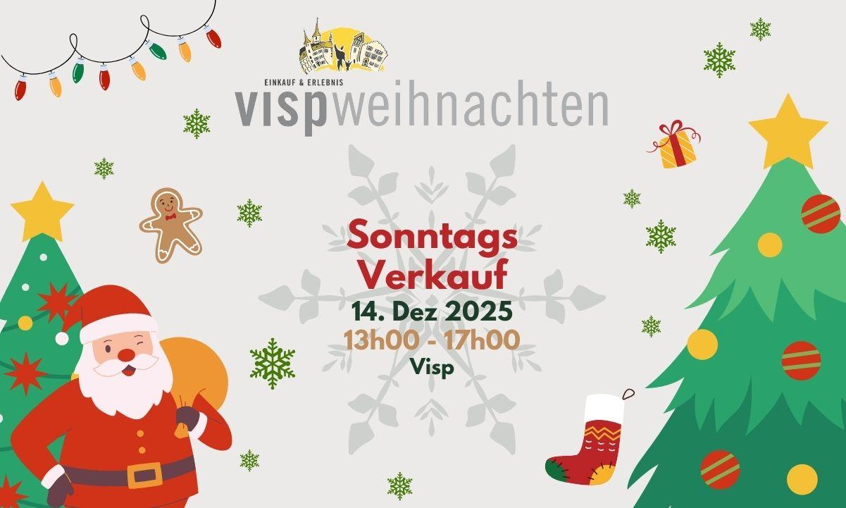 Am 14. Dezember 2025 lädt der Verein Visp Gewerbe und Tourismus zu einem besonderen Weihnachtsevent ein, welcher die Magie der Weihnachtszeit nach Visp bringt. Mit einem vielfältigen Unterhaltungsprogramm, zauberhaften Momenten und stressfreiem Weihnachtseinkauf wird dieser Sonntag zu einem Highlight in der Adventszeit.