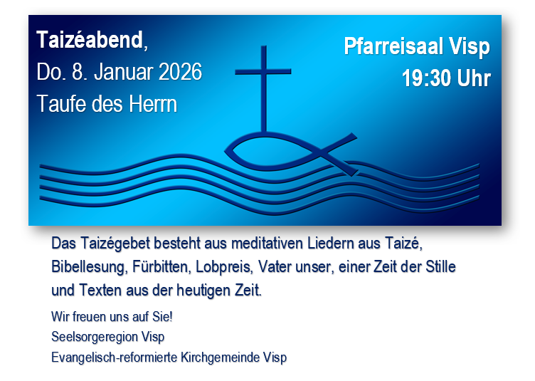 Gerne laden wir Sie zum Taizéabend «Taufe des Herrn» ein: