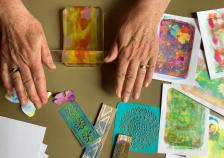 Drucken mit der Gel-Platte - Wimpelketten, Karten und was dir noch so einfällt. Komm ins studio VIELFALT und probier es aus!